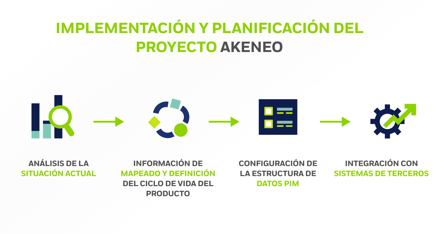 Como hemos visto en los últimos años, cada negocio online tiene diferentes necesidades de crecimiento, además de un funcionamiento que le es propio, y no hay un procedimiento estándar que sea válido para todos los comercios. Basándonos en nuestra experiencia en la implantación de sistemas PIM con Akeneo, podemos confirmar que en la mayoría de ellos hay que llevar a cabo los siguientes pasos.