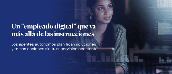 Un agente autónomo es como tener un «empleado digital» que puede hacer mucho más que simplemente seguir instrucciones. Estos agentes pueden analizar situaciones, planificar soluciones y tomar acciones sin que tengas que estar constantemente supervisando cada paso que dan.