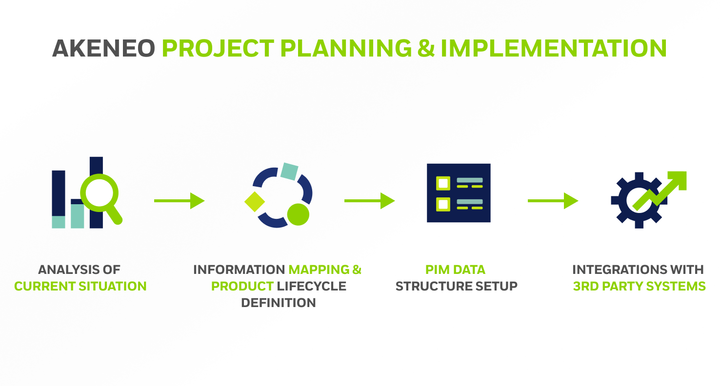 As we’ve seen in recent years, every online business has unique growth needs and operational processes, and there’s no one-size-fits-all standard procedure that applies to all merchants. Drawing from our experience in implementing PIM systems with Akeneo, we can confirm that the majority of them require the following steps.